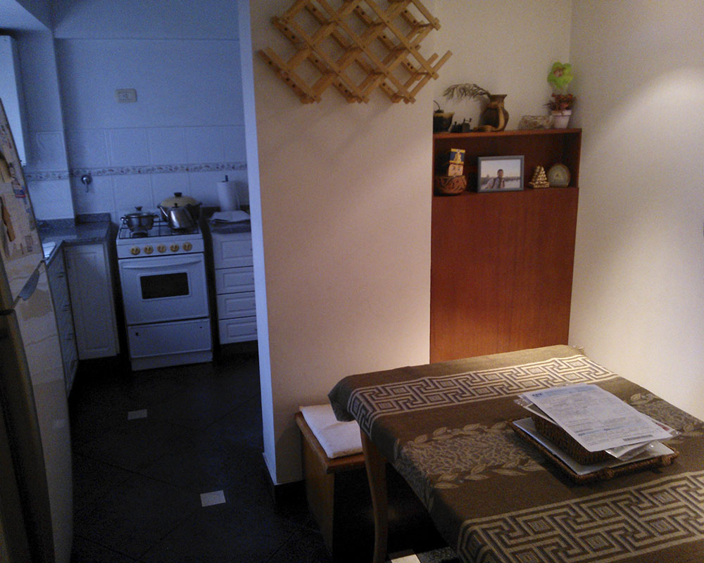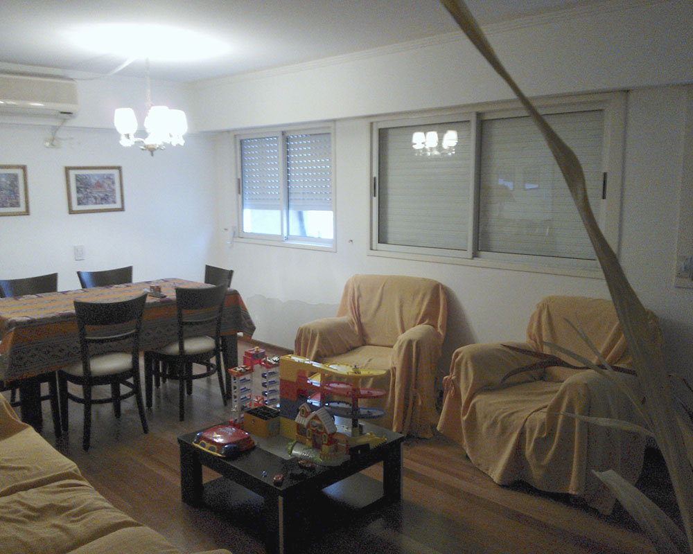 Departamento de muy alta calidad, con pisos entarugados de madera, molduras de yeso, amplio dormitorio principal en suite, cocina comedor para 5 o 6 personas, living 3,5 por 6,5. Vista al río desde la cocina.